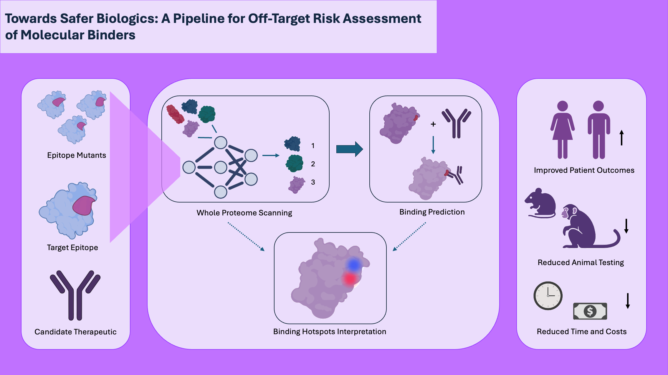 Our approach combines three steps: generating virtual variants of the target, scanning them for similarities across all human proteins, and using 3D models to predict when a therapy might bind to the wrong target. By integrating explainable AI, we can also highlight which regions of a protein are most likely to drive these unwanted effects.
